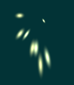 - spread (default: 1.0): determines how strongly the particles deviate from each other. With low values the particles will stay quite close together, high values will make them fly in all directions. Also affects their speed.